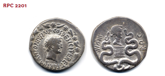 | RPC 2201 | - 안토니우스와 그의 아내 옥타비아를 기념하기 위해 주조된 동전 - 한 면에는 안토니우스, 다른 면에는 옥타비아의 초상이 새겨져 있음 - 삼두정치의 단결을 상징 |