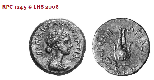 | RPC 1245 © LHS 2006 | - 클레오파트라의 흉상이 새겨진 동전 - 클레오파트라의 권위를 상징하며, 이집트와 그 주변 지역에서 주조됨 |
