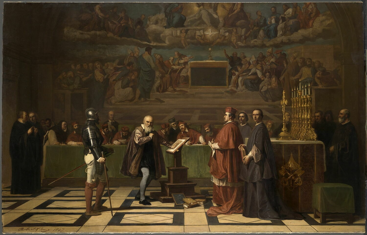 1633년 6월 22일, 갈릴레오는 이단 혐의로 강하게 의심된다는 판결을 받으며 무릎을 꿇으라는 명령을 받았습니다. 그는 코페르니쿠스주의의 "허위 의견을 완전히 버리라"는 강요를 받았고, 자신의 평생 연구의 많은 부분을 철회하는 내용의 성명을 낭독해야 했습니다.