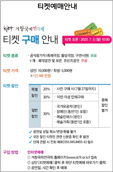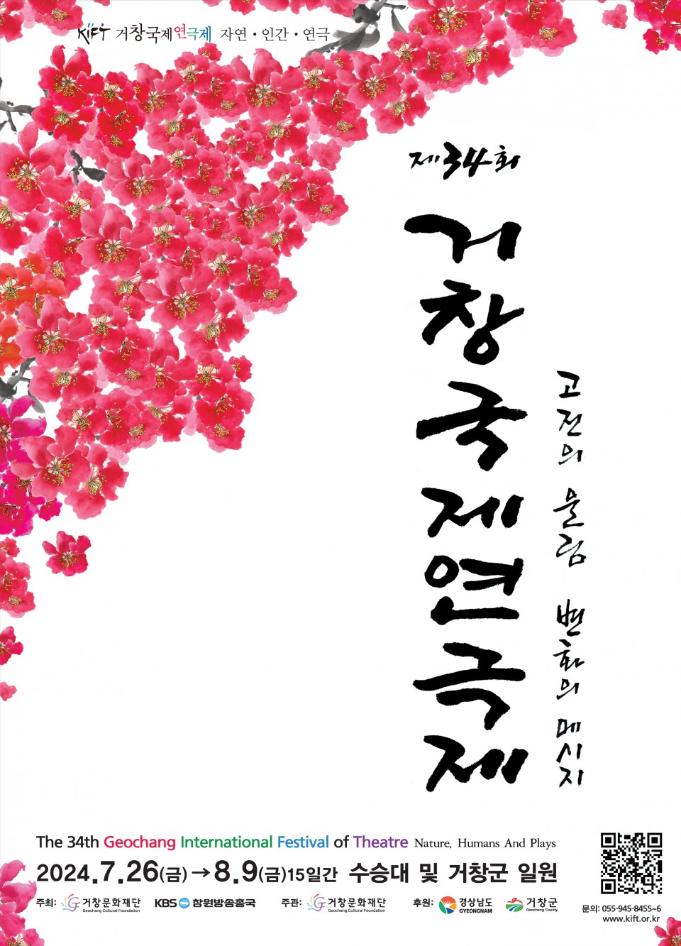 제34회 거창국제연극제(The 34th Geochang International Festival of Theatre)는 '고전의 울림, 변화의 메시지!'라는 슬로건 아래 2024년 7월 26일(금)부터 8월 9일(금)까지 15일간 거창군 수승대 및 일원에서 개최됩니다. 이번 연극제는 다양한 프로그램과 함께 공연예술의 세계적인 흐름과 실험정신을 만날 수 있는 기회를 제공합니다.