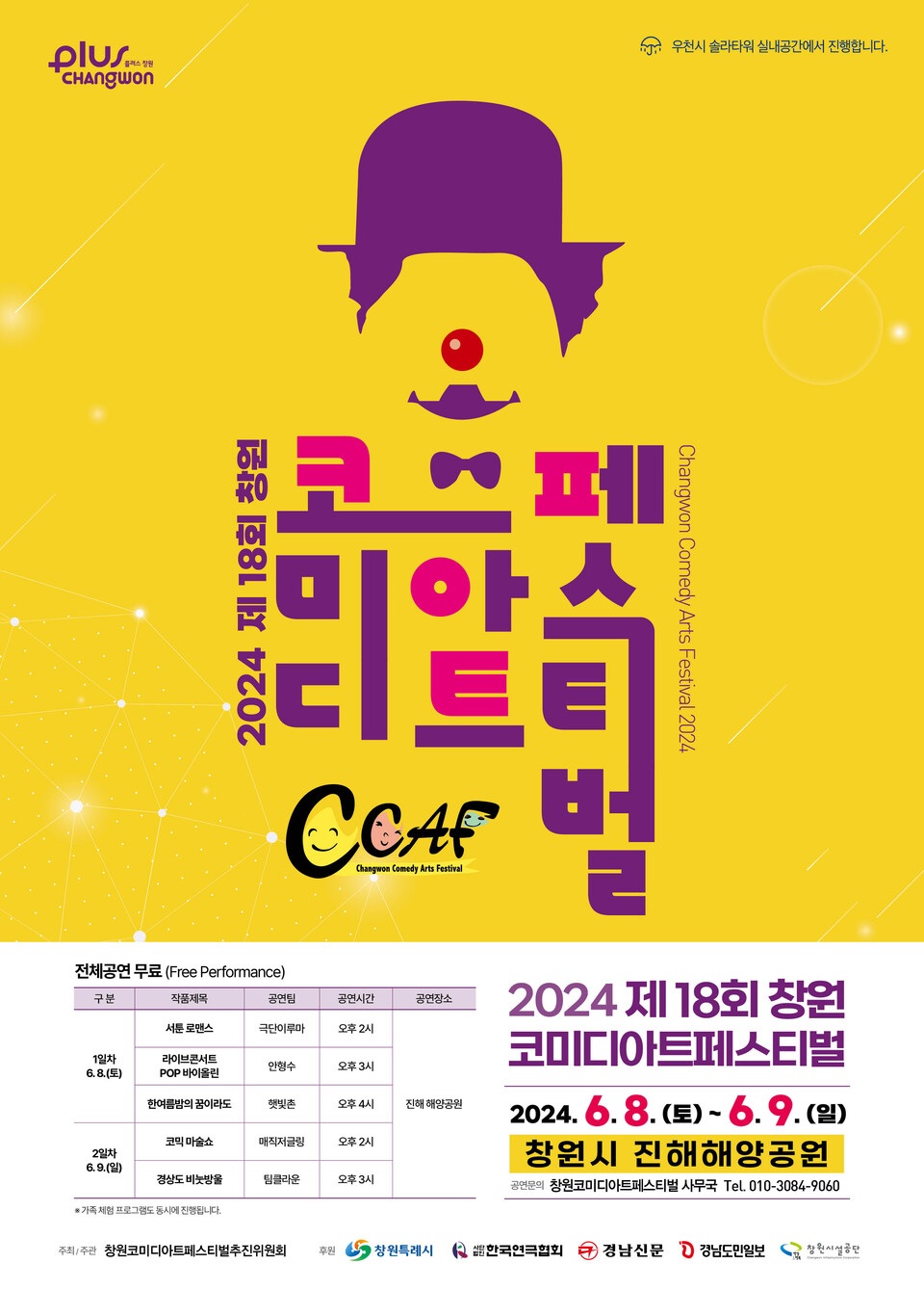 제18회 창원코미디아트페스티벌은 다양한 공연과 체험 프로그램을 통해 관객들에게 즐거움과 감동을 선사하는 여름 축제입니다. 진해해양공원에서 열리는 이번 축제에서 가족과 함께 웃음 가득한 시간을 보내세요.