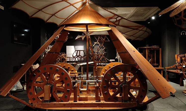 ▷ 구성 재료: 모형은 나무와 천을 사용하여 제작되었으며, 이는 레오나르도가 당시 사용할 수 있었던 재료를 기반으로 한 것입니다.