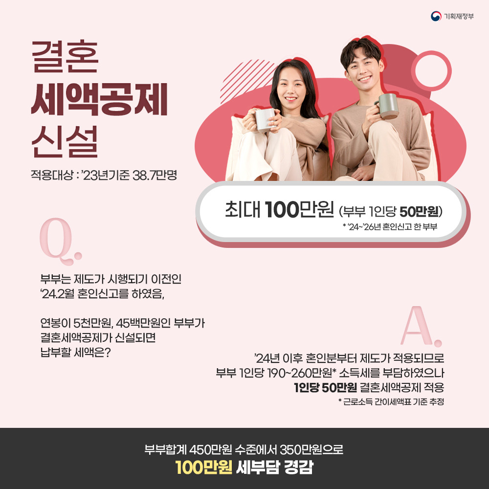 6️⃣ 결혼세액공제 도입: 신혼부부는 결혼 시 1인당 50만 원의 세액공제를 받을 수 있습니다.