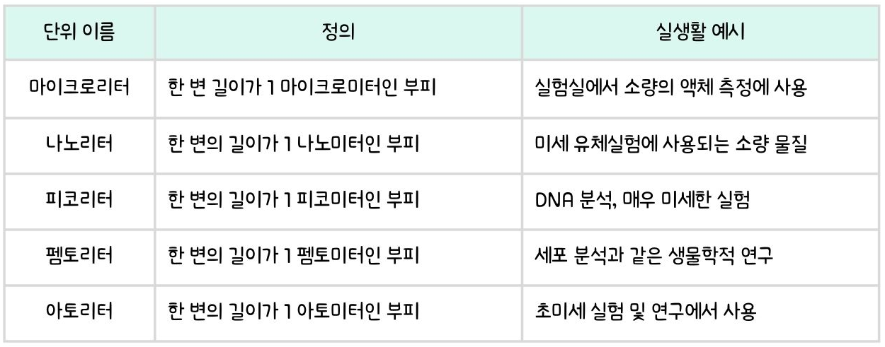 이처럼 소용량 단위는 주로 과학 및 의학 분야에서 정밀한 계량이 필요한 연구 및 실험에 필수적입니다.