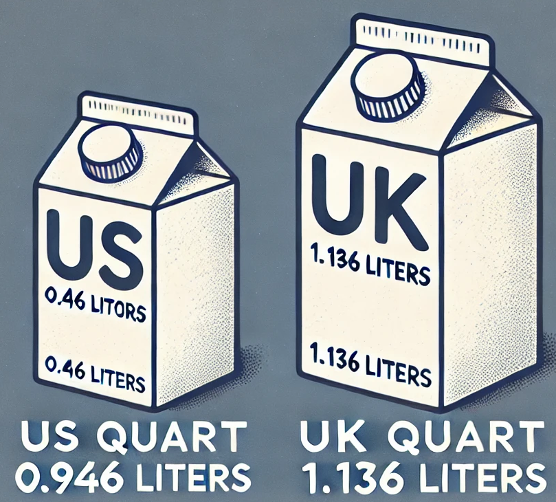 ♣ 영국 쿼트(UK quart): 약 1.136리터로, 영국에서는 음료와 같은 액체를 측정하는 데 주로 사용됩니다.