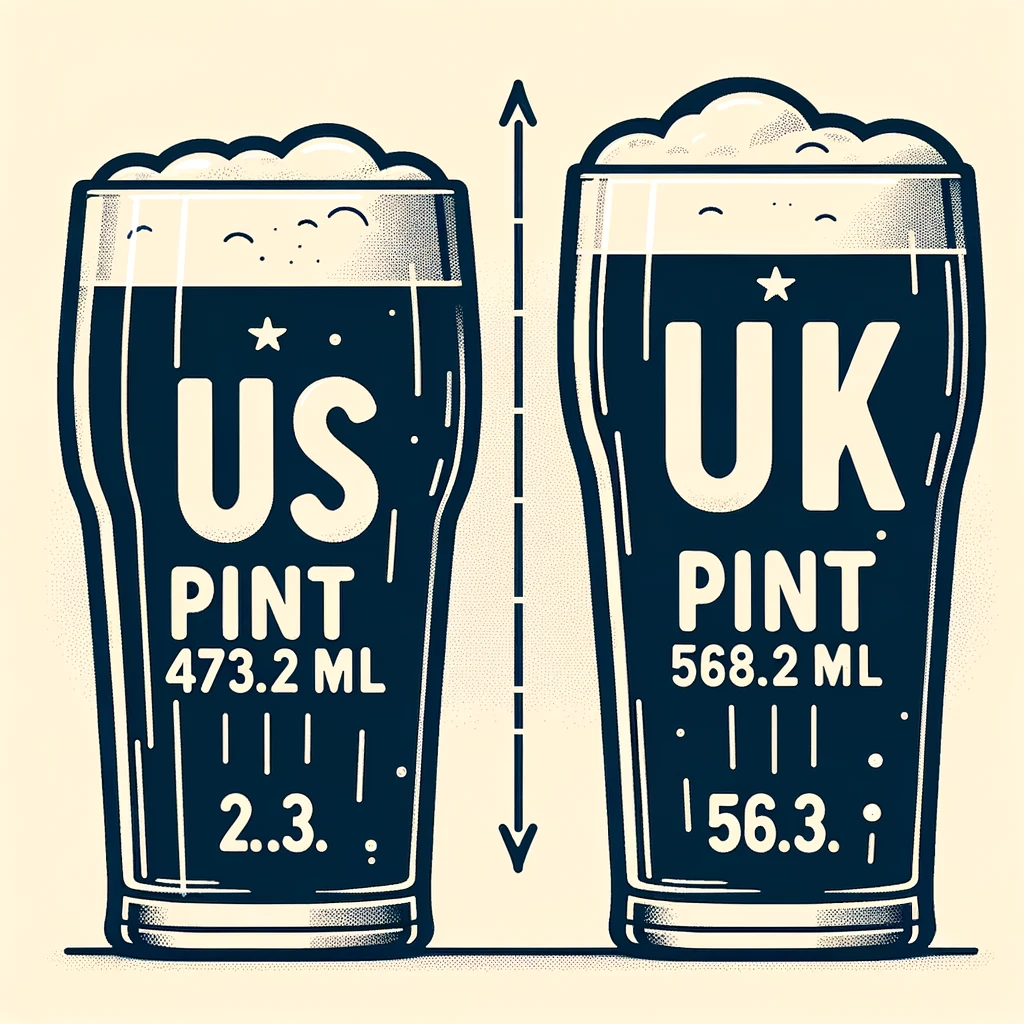 ♣ 영국 파인트(UK pint): 약 568.3mL로, 영국에서 맥주를 주문할 때 가장 흔히 사용되는 단위입니다. 영국의 1파인트 맥주는 미국의 파인트보다 더 큰 용량입니다.