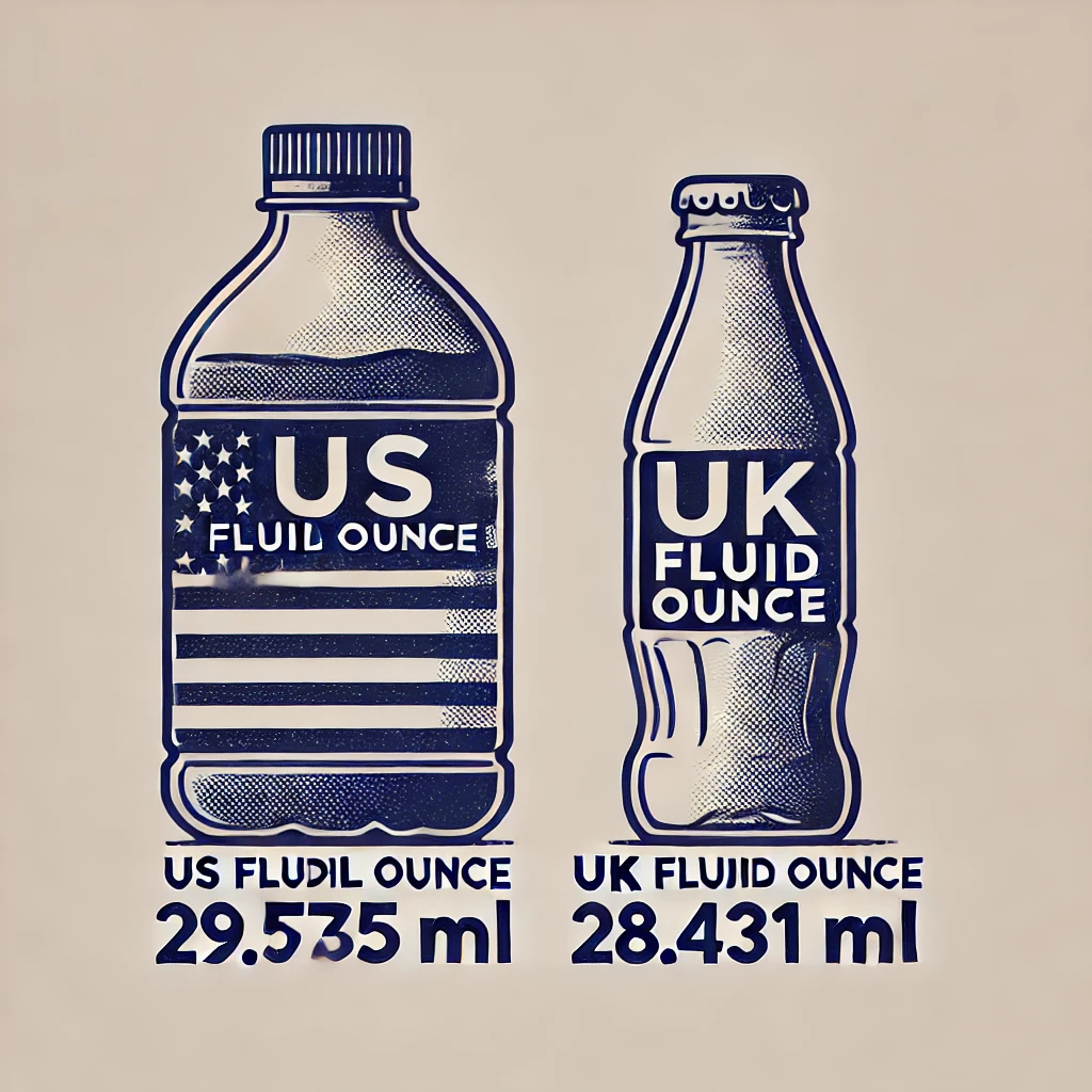 ♣ 영국 플루이드 온스 (UK fl oz): 약 28.4131 mL로, 영국에서는 같은 용어를 사용하지만, 미국보다 약간 적은 부피를 의미합니다. 영국에서는 맥주나 음료를 계량할 때 이 단위를 많이 사용합니다.