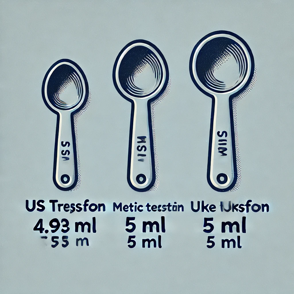 - 미터법 티스푼 (Metric tsp): 정확히 5 mL로, 호주, 캐나다 등에서 주로 사용됩니다.