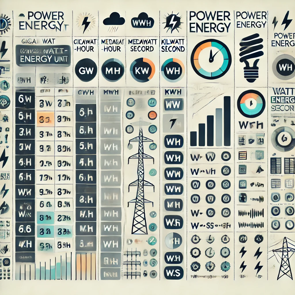 전력 에너지를 측정하는 중요한 단위인 기가와트시(GW*h), 메가와트시(MW*h), 킬로와트시(kW*h), 킬로와트초(kW*s), 와트시(W*h), 와트초(W*s)에 대해 알아보세요. 이 글에서는 각 단위의 정의, 역사적 배경, 공식, 그리고 다양한 응용 분야를 포괄적으로 다룹니다.