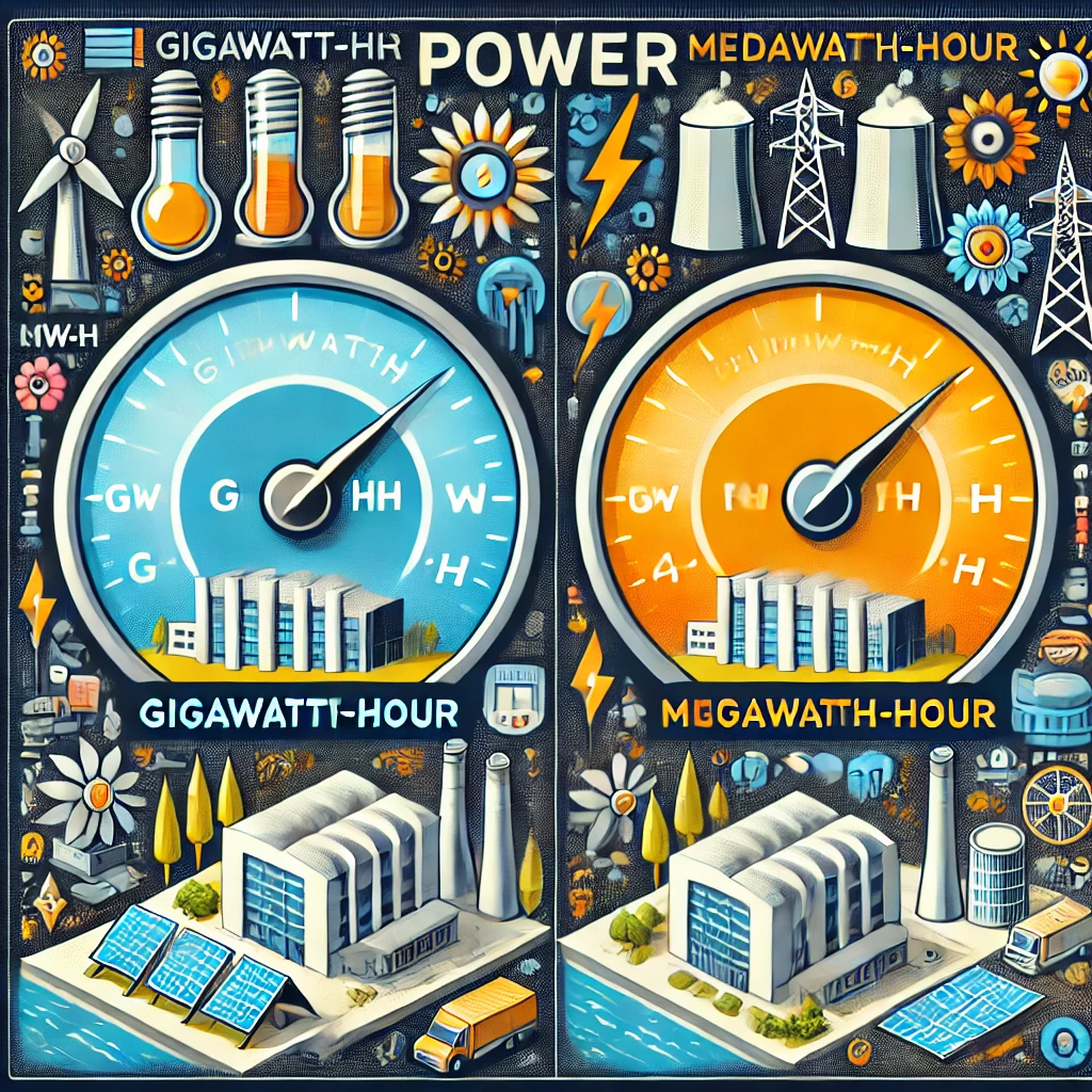 □ 응용 분야: 기가와트시는 대형 전력망에서 전력 소비와 생산을 평가하는 데 사용됩니다. 원자력 발전소, 풍력 발전소 및 대형 화력 발전소의 출력을 계산할 때 주로 활용됩니다.