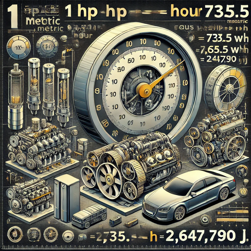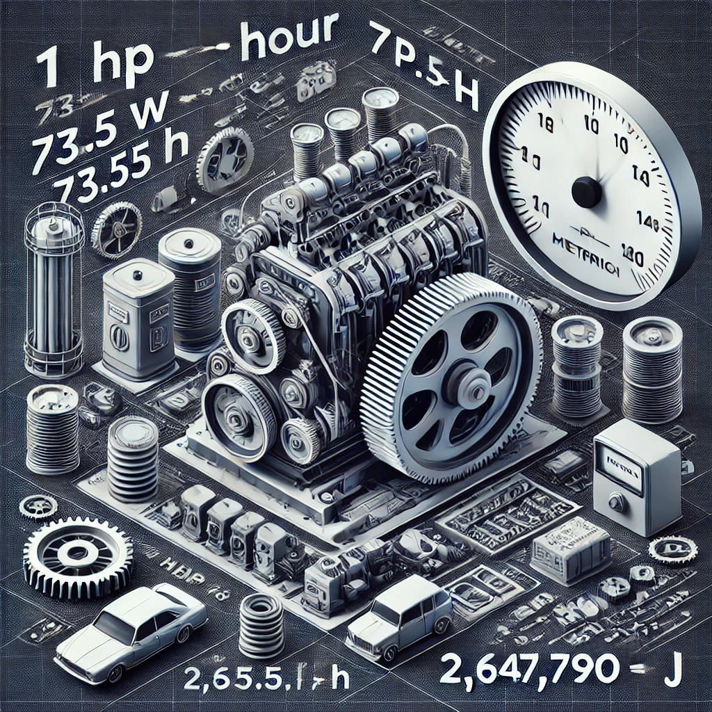 □ 정의: 1 hp (metric)*h = 2,647,790 J. 이는 1시간 동안 1마력(미터법)의 힘으로 수행된 일의 에너지 양을 나타냅니다.