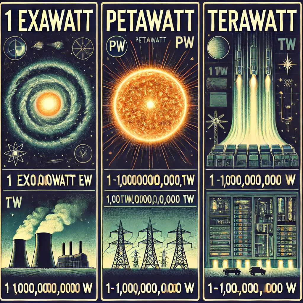 엑사와트는 1018 와트에 해당하는 매우 큰 전력 단위로, 천문학적 규모의 에너지 흐름을 설명할 때 사용됩니다. 엑사와트 단위는 별의 에너지 방출량이나 우주에서 발생하는 초고에너지 사건을 설명하는 데 적합한 단위입니다.