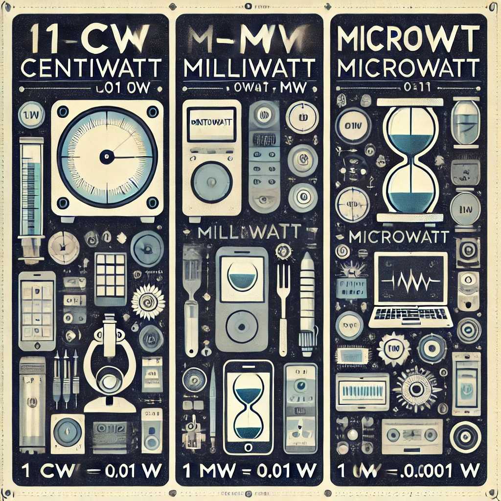 센티와트는 0.01와트에 해당하며, 초소형 전력 소모 기기나 정밀한 전력 측정이 필요한 경우에 사용됩니다. 센티와트는 전력 소비가 극도로 낮은 장비나 실험 장치에서 사용되며, 연구나 실험에서 자주 사용되는 단위입니다.