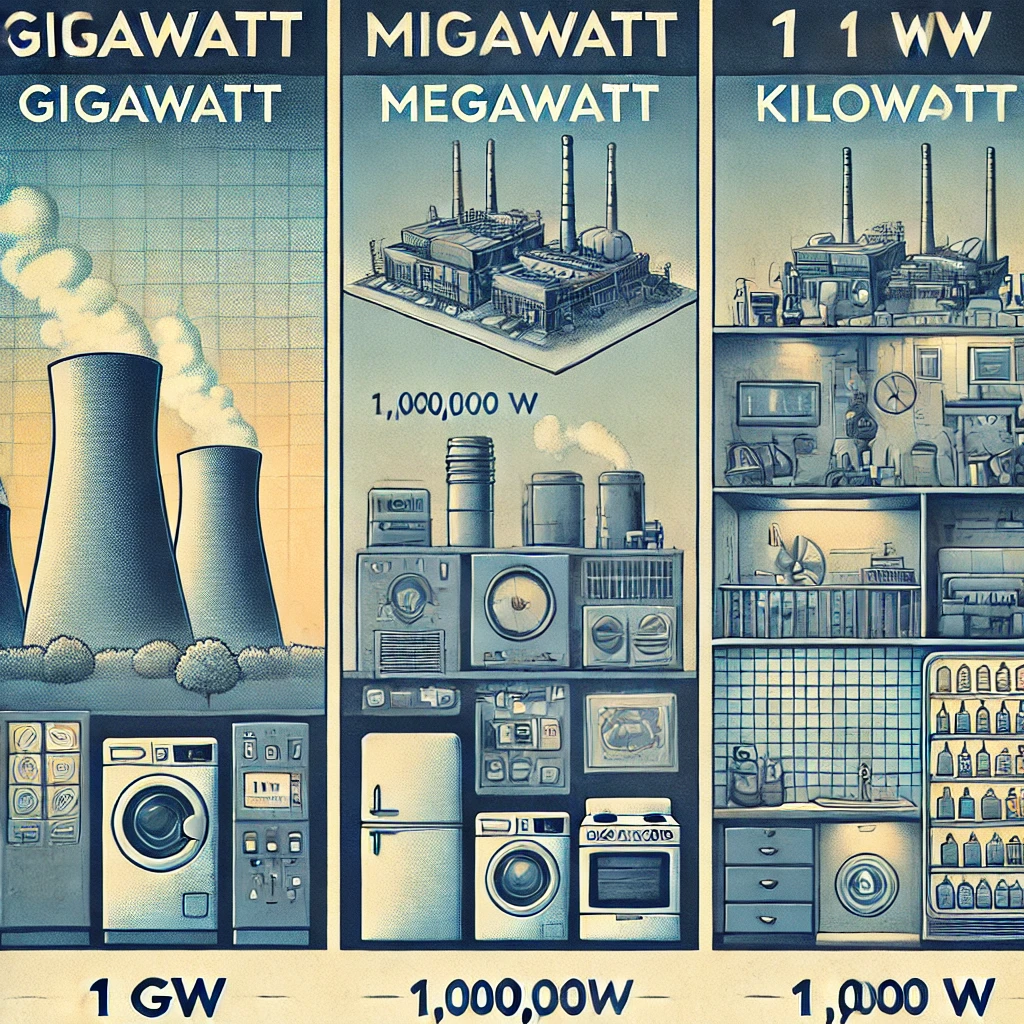 □ 응용 분야: 기가와트는 대형 전력 발전소나 도시의 전력 수요에서 주로 사용됩니다.