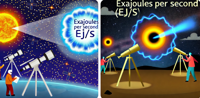 엑사줄/초(EJ/s)는 1018줄의 에너지가 1초 동안 변환되는 속도를 나타냅니다. 매우 큰 규모의 에너지를 다룰 때 사용됩니다. 주로 천문학적 현상이나, 지구의 에너지 방출량을 계산하는 데 사용됩니다. 예를 들어, 항성에서 방출되는 에너지를 분석할 때 엑사줄/초 단위가 적용될 수 있습니다.