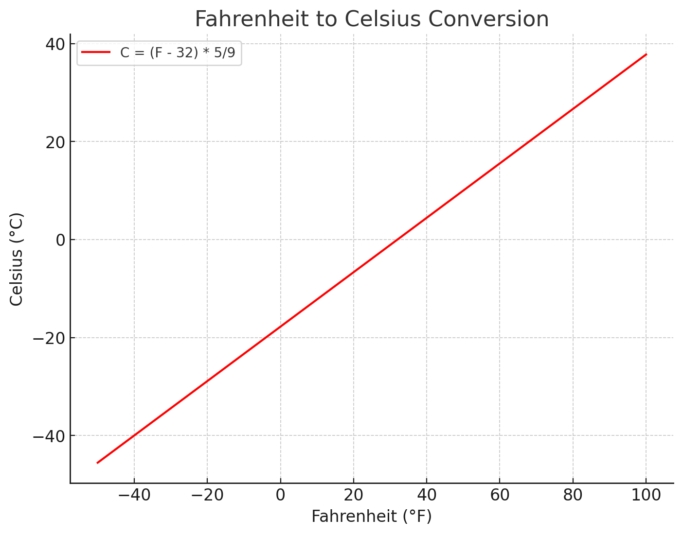 화씨(°F)를 섭씨(°C)로 변환하는 공식은 다음과 같습니다.