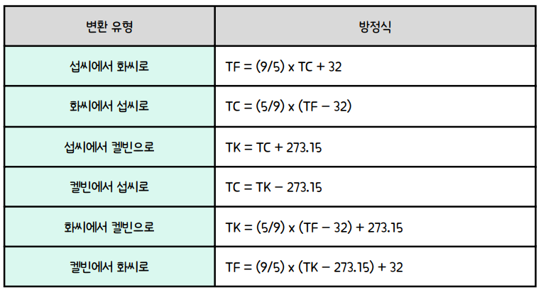 화씨와 다른 단위와의 관계