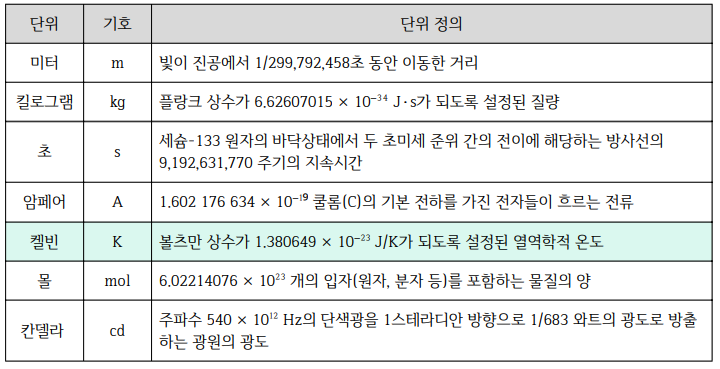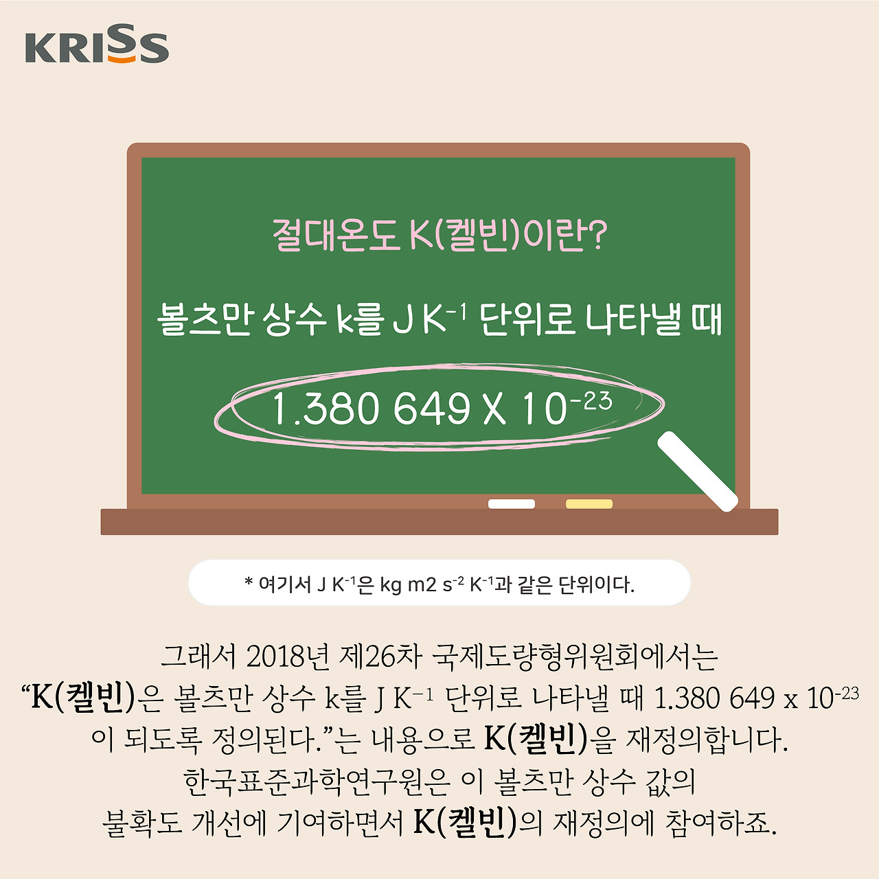 ♣ 2019년 이후로, 켈빈은 물의 삼중점 대신 볼츠만 상수의 고정값을 사용하여 정의되었습니다. 볼츠만 상수는 1.380649 × 10⁻²³ J/K로 고정되었으며, 이를 기반으로 1켈빈(K)은 기체 분자들의 평균 운동에너지에 해당하는 절대적인 값으로 정의됩니다.