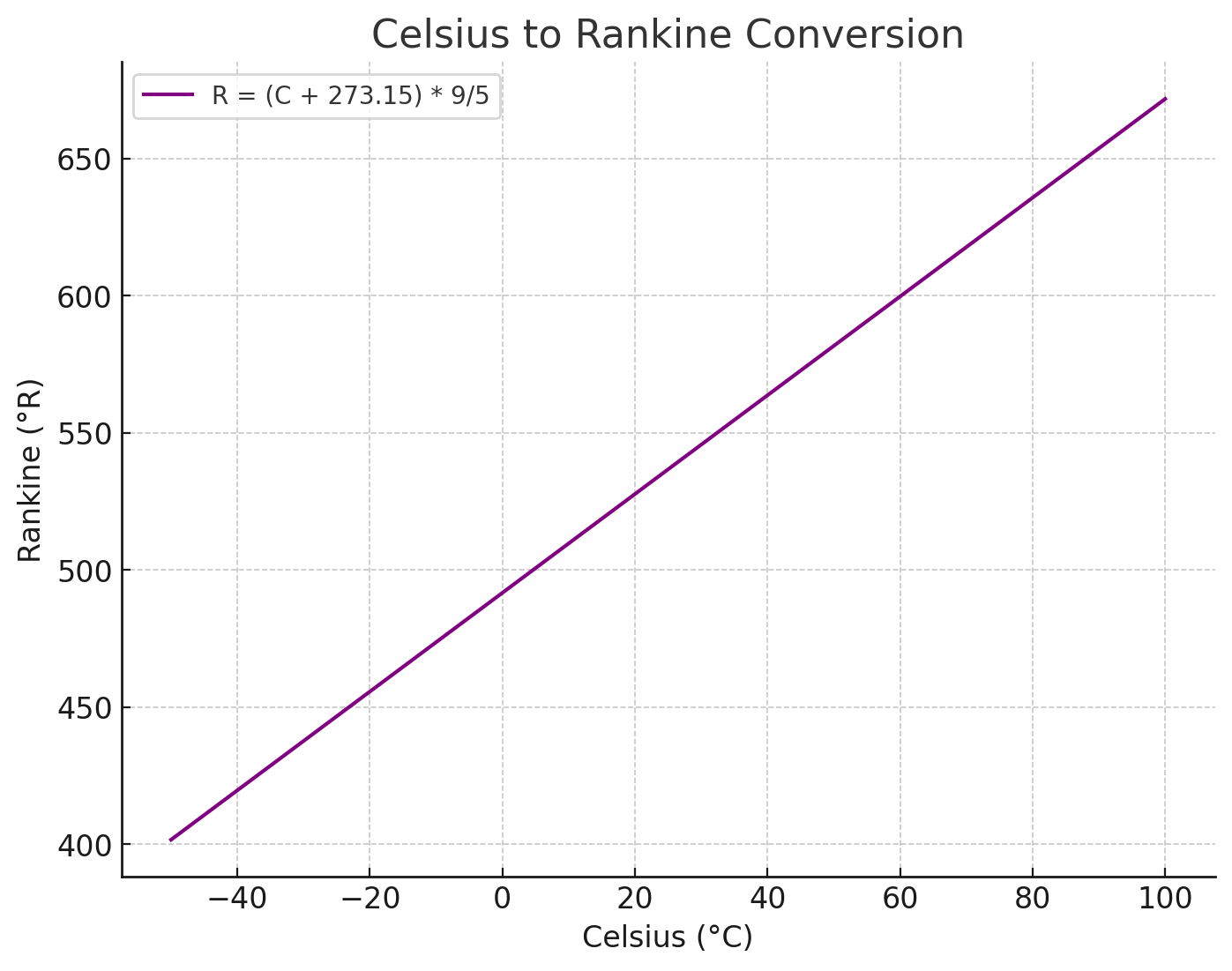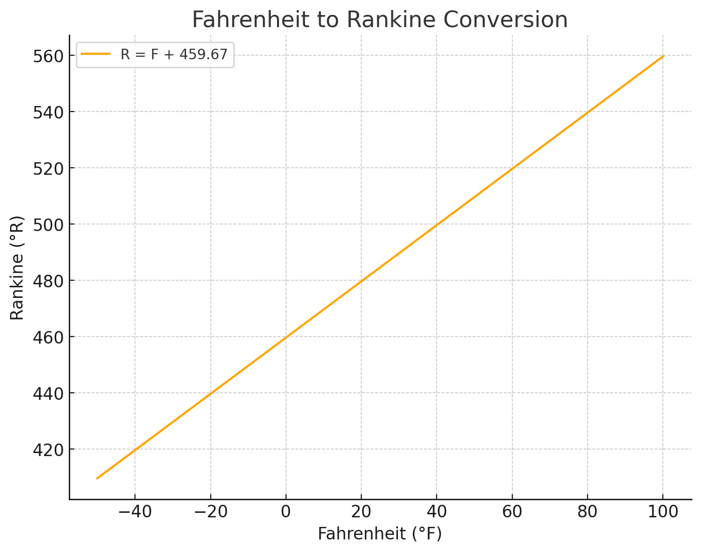랭킨은 화씨와 직접적인 관계를 가지며, 화씨 온도에 459.67을 더하면 랭킨 온도를 얻을 수 있습니다. 또한 섭씨에서 랭킨으로 변환할 때는 섭씨에 273.15를 더한 후 9/5를 곱합니다.