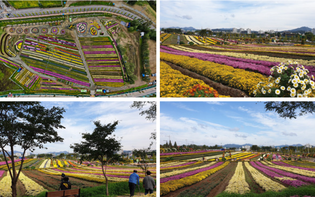 연천군 전곡읍 연천 전곡리 유적 입구 30,000㎡ 드넓은 면적에 오색 국화로 파노라마 물결 경관조성과 국화화분 4만개, 현애국, 분재국, 대국, 다륜국, 조형물 등 다양한 형태의 국화꽃송이로 가을분위기를 연출, 방문객에게 힐링 가을의 감동과 추억을 선물합니다. 연천국화전시회에 여러분을 초대합니다.