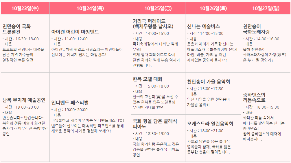 익산천만송이국화축제 주요 프로그램
