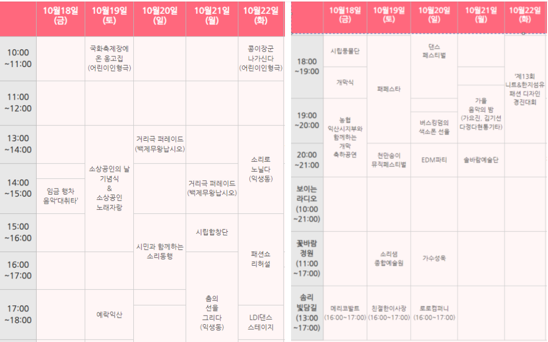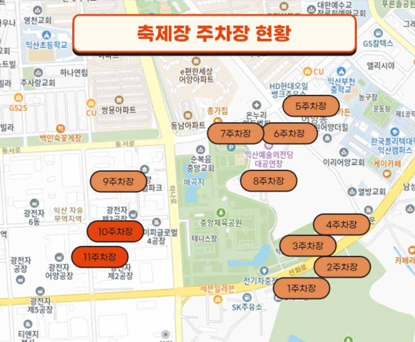 🅿️ 주차장: 축제 기간 동안 익산시에 위치한 다수의 주차장을 무료로 이용 가능합니다. 만차 시 주변 주차장을 이용해 주세요.