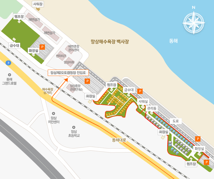 - 위치: 강원도 동해시 동해대로 6220 망상제2오토캠핑장 일대