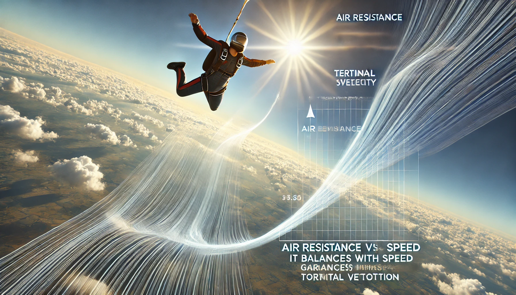 ○ 스카이다이버: 자세에 따라 저항 계수가 달라집니다. 펼친 자세는 공기 저항이 더 크고, 머리 우선 자세는 저항이 작습니다.