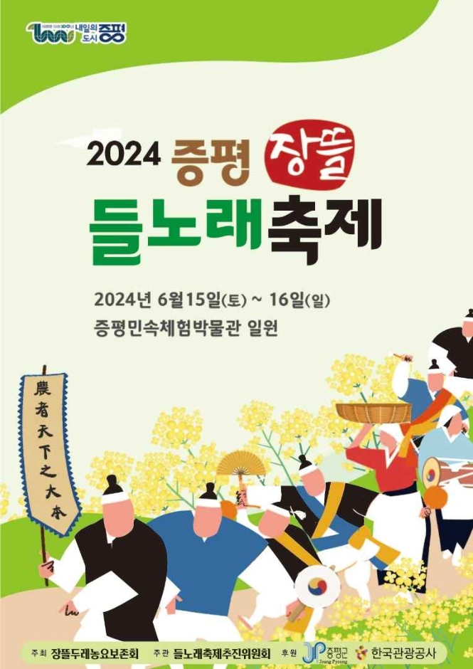 증평은 넓은 뜰이라는 의미로 불리며, 비옥한 농경지로 잘 알려져 있습니다. 증평장뜰들노래축제는 증평 고유의 전통 농경문화를 계승하는 축제로, 증평군 향토유적 제12호 장뜰두레농요 시연을 통해 전통 농경문화를 생생하게 체험할 수 있는 기회를 제공합니다. 축제는 증평민속체험박물관 일원에서 열리며, 다양한 공연, 경연, 체험 프로그램이 마련되어 있어 방문객들에게 특별한 여름을 선사합니다.