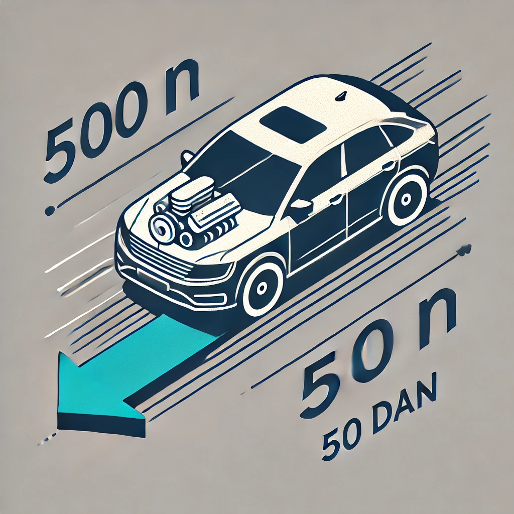 예를 들어, 자동차가 \(500 \, \text{N}\)의 추진력을 생성한다고 가정하면
