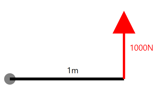 다음은 1000N의 힘이 1m 지점에서 90° 각도로 작용하는 상황을 시각화한 이미지입니다.