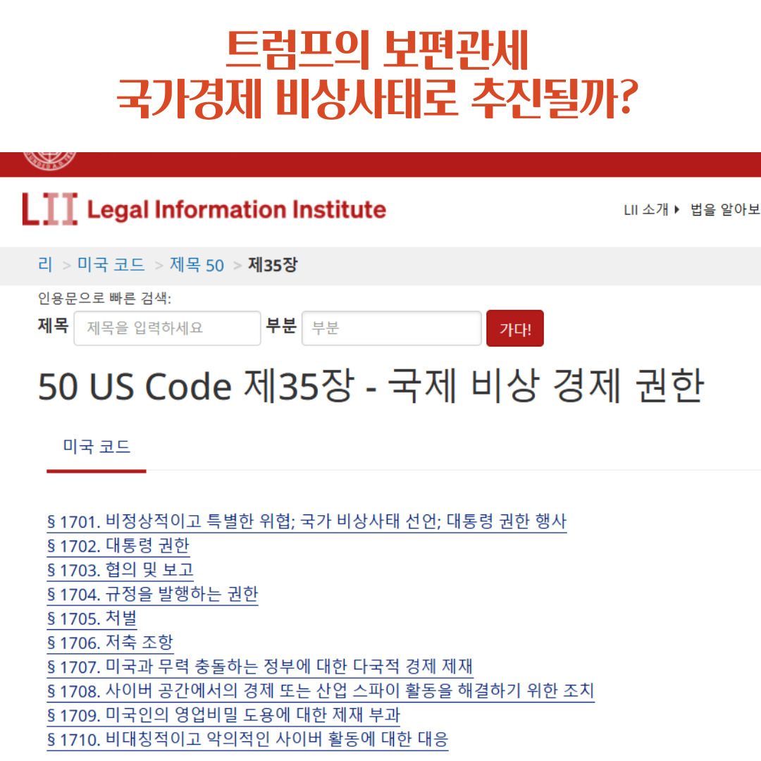 - IEEPA는 관세 부과를 위한 구체적인 조건이 엄격하지 않아 활용이 용이.