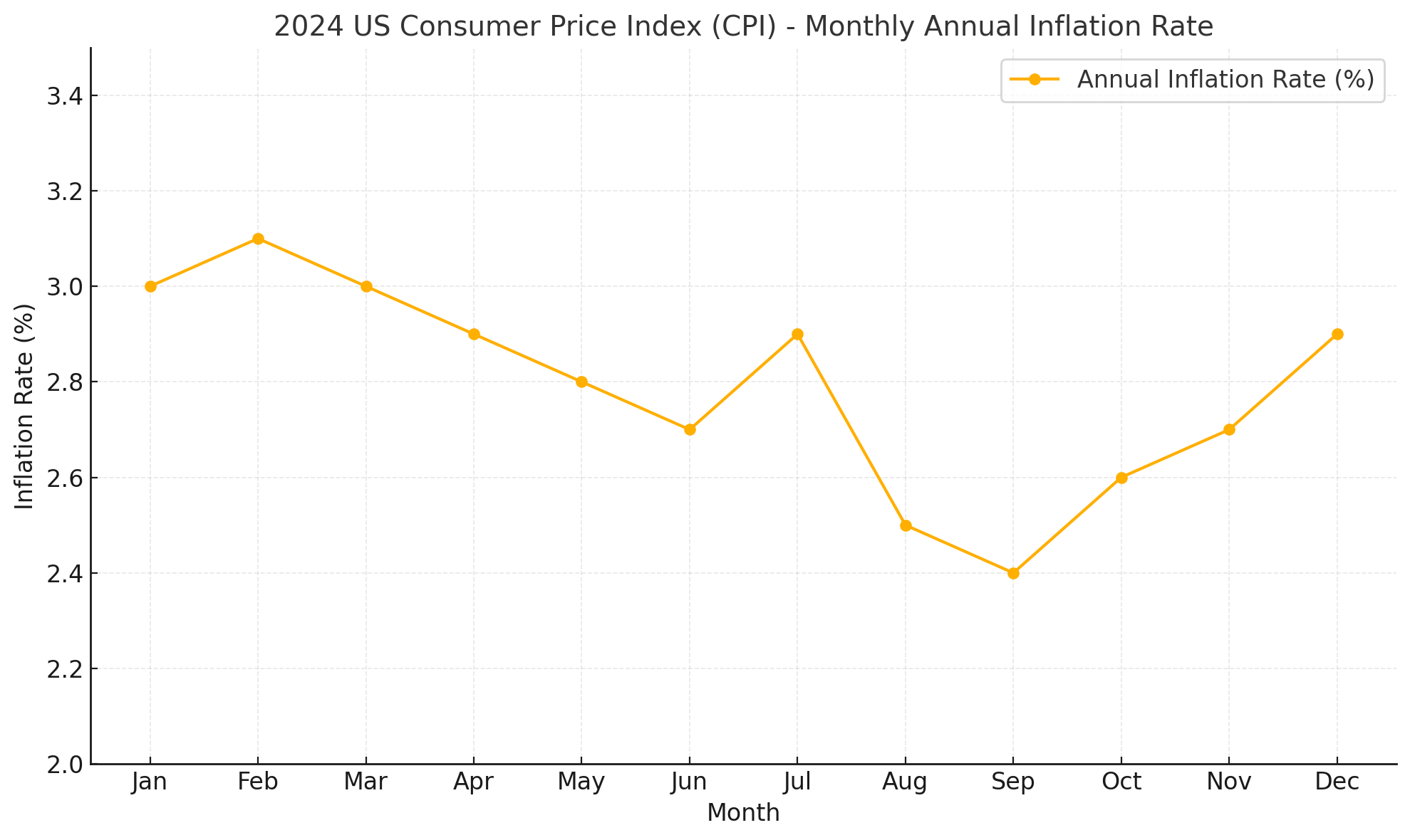 ※ 미국의 소비자물가지수(CPI)는 매월 발표되며, 연간 인플레이션 추이를 파악하는 데 중요한 지표로 활용됩니다. 2024년의 월별 연간 인플레이션율은 다음과 같습니다.