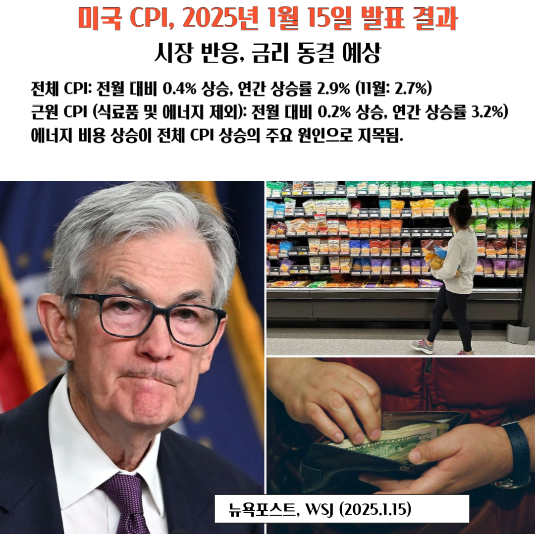 2025년 1월 15일, 미국 노동통계국(Bureau of Labor Statistics)은 2024년 12월 소비자물가지수(CPI)를 발표했습니다. 이번 발표는 인플레이션의 흐름과 연방준비제도(Fed)의 금리 정책 전망을 가늠할 주요 지표로 주목받았습니다.