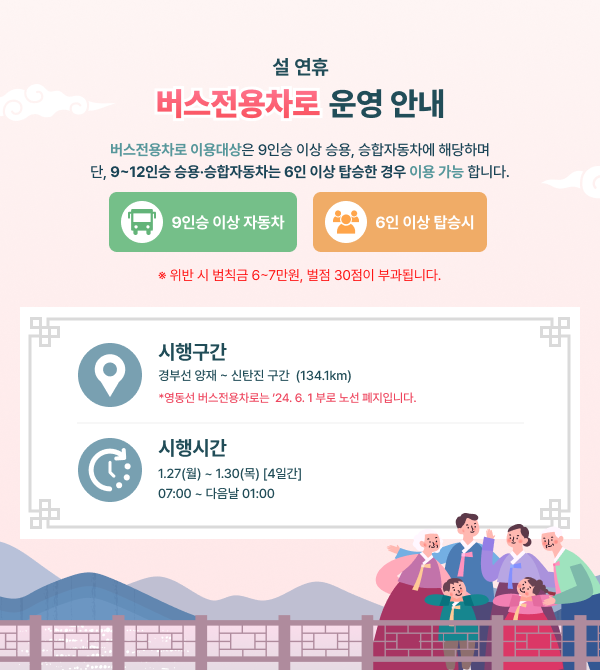 - 법제화된 내용에 따라 설날과 추석 연휴 기간 3일 동안 통행료가 면제