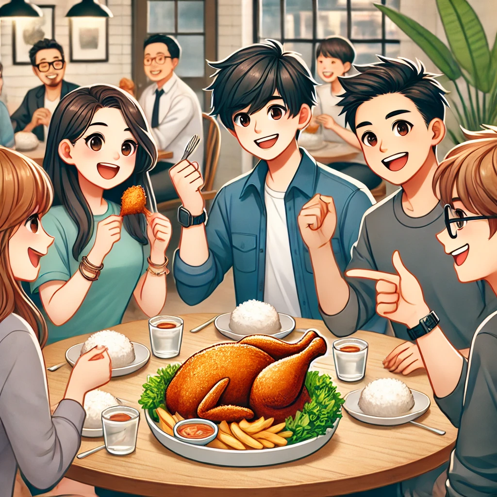 설명: '오늘 저녁 치킨 고?'의 줄임말로, 친구나 가족과 함께 치킨을 먹자는 제안할 때 사용합니다.