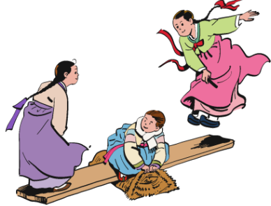 널뛰기는 설날, 단오, 추석에 여성들이 긴 널빤지의 중심을 괴고 번갈아 뛰며 즐기는 전통 놀이입니다. 주로 정초에 행해졌으며, 설빔을 입은 부녀자들이 널을 뛰며 활달한 기상을 표현했습니다. 담장 너머를 보기 위해 시작되었다는 설, 옥에 갇힌 남편을 보려 했다는 설 등이 있으며, 정초에 널뛰기를 하면 일 년 내내 가시에 찔리지 않는다는 속신도 있습니다. 몸무게 차이를 조절하는 ‘밥을 준다’는 규칙이 있으며, 생명력과 활기를 상징하는 신년맞이 놀이이자 신체단련에도 도움을 주는 운동으로 여겨졌습니다.