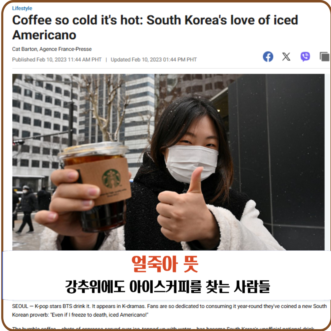 ※ AFP 원문 기사: Coffee so cold it's hot: South Korea's love of iced Americano (AFP)