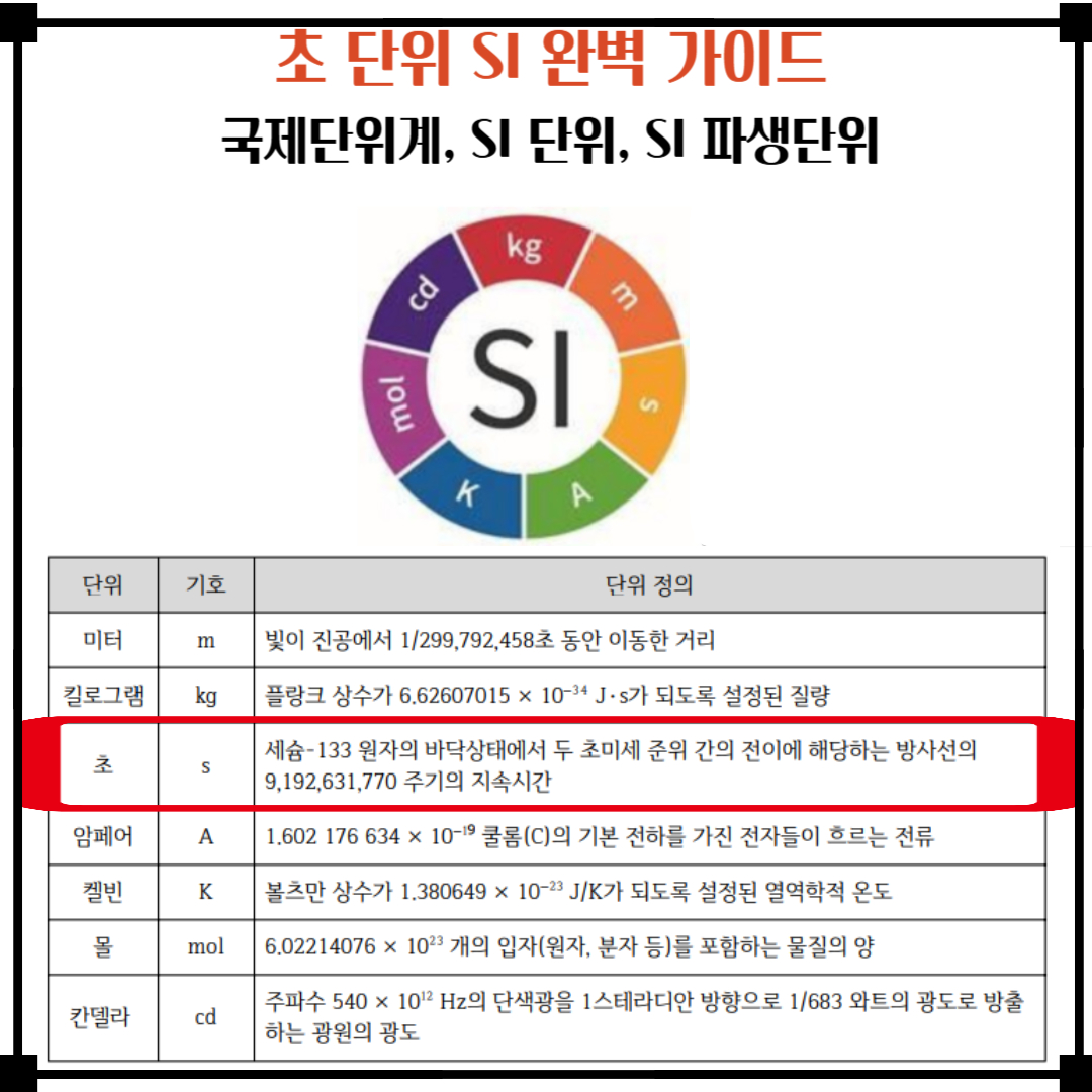 SI 기본 단위는 과학과 기술의 발전에 필수적인 요소로, 전 세계적으로 통일된 측정 기준을 제공합니다. 이 글에서는 7가지 SI 기본 단위 중 시간의 단위 '초(second, s)'에 대해 상세히 알아보고, 그 정의와 역사적 변화, 측정 장비 등을 살펴보겠습니다.