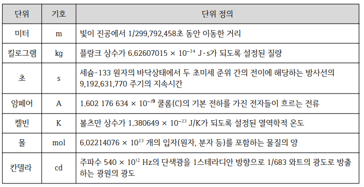 SI 기본 단위 및 관련 자료