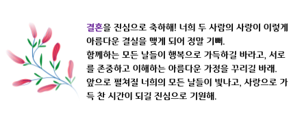 | 12 | 결혼 축하해! 두 분의 사랑이 항상 빛나길 기원해. |