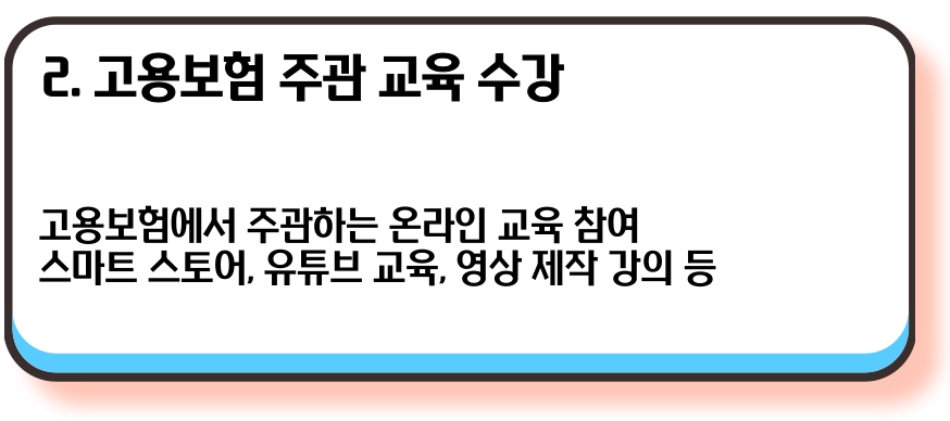 - 교육 수강 조건: 고용보험에서 주관하는 온라인 교육(STEP), 집단상담, 단기집단상담 프로그램 등을 수강합니다.
