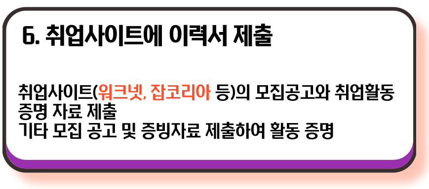- 2차 ~ 4차: 재취업활동 또는 구직활동(입사 지원) 중 한 가지를 선택하여 인증