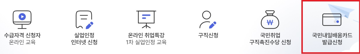 - 카드 발급까지 일주일 이상 걸리므로 교육 시작일로부터 7일 전에는 내일배움카드가 발급되어 있어야 합니다.