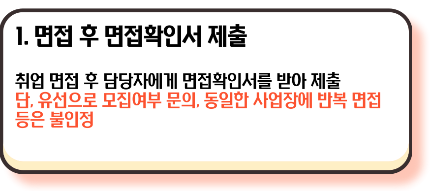 - 면접확인서 제출: 면접 후, 해당 사업장의 담당자에게 면접확인서를 작성 받아야 합니다. 이 확인서를 고용센터에 제출해야 구직활동으로 인정됩니다.