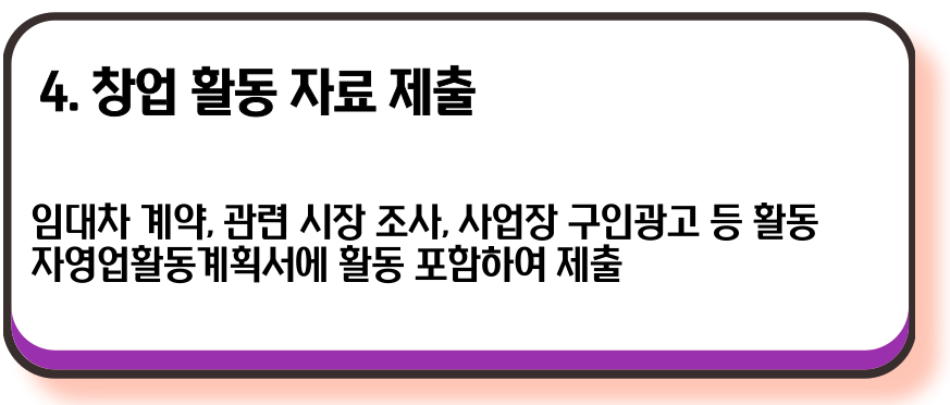 - 조건: 자영업활동계획서 및 관련 증빙자료 제출