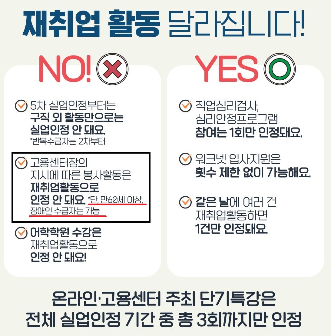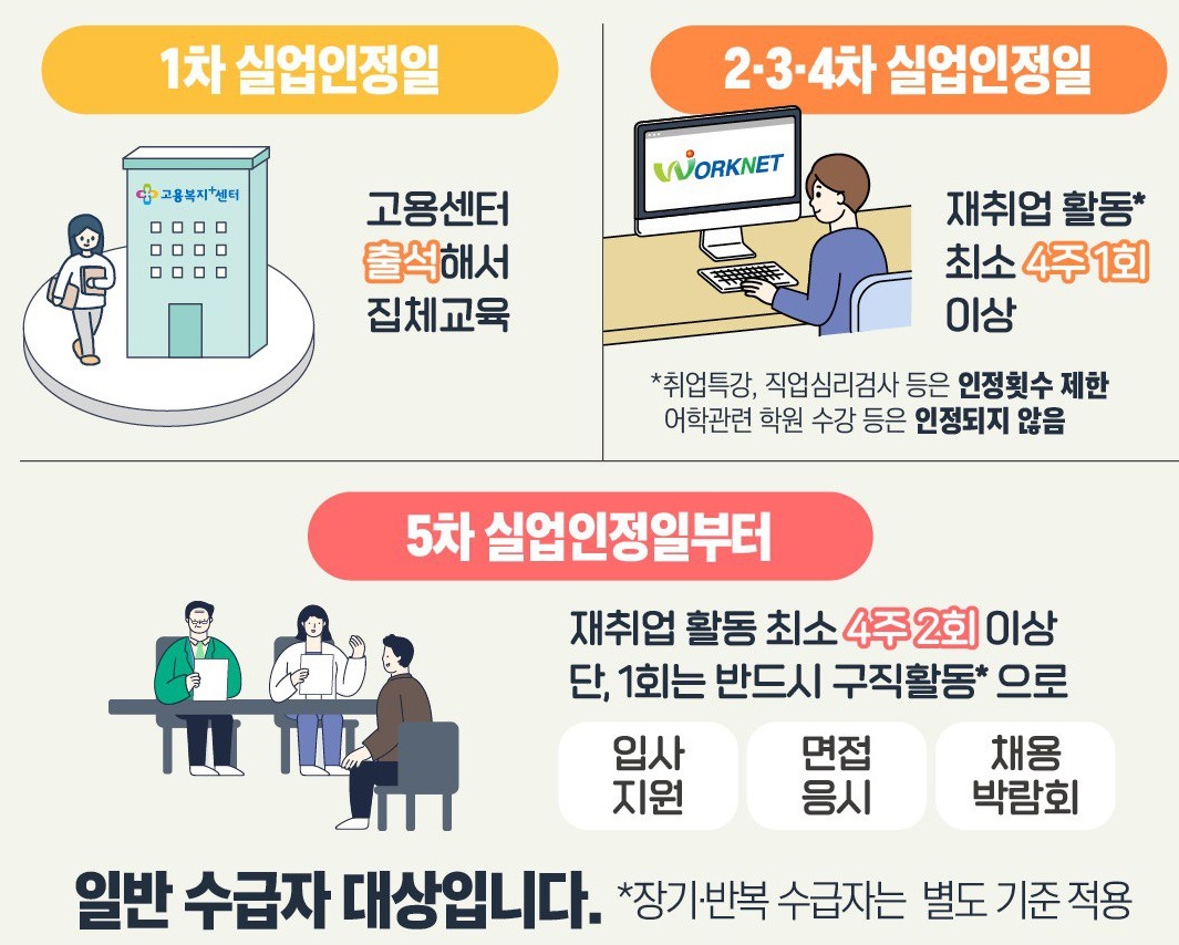 1차: 고용센터 집체교육 2차부터: 구직활동만 가능 |