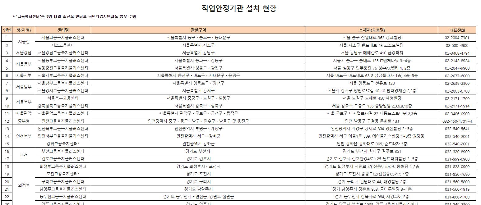 “직업안정기관”이란 직업소개, 직업지도 등 직업안정업무를 수행하는 지방고용노동행정기관을 말한다. 직업안정기관에서 제공하는 취업지원 서비스에 참여하는 것도 실업급여를 받기 위한 구직활동으로 인정됩니다. 다음과 같은 조건과 절차를 따라야 합니다. 아래는 직업인정기관 리스트입니다.