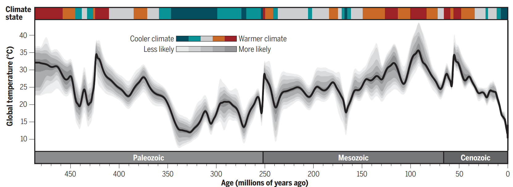 "Sea level reconstructed back to 540 million years ago using ice caps as a model": 이 연구는 백악기 동안 해수면이 현재보다 200미터 이상 높았음을 보여주며, 이는 대륙의 상당 부분이 바다에 잠겼음을 의미합니다.