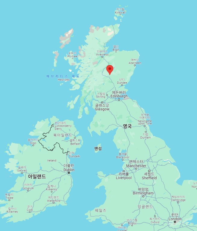 제임스 허턴은 1785년 여름에 스코틀랜드 하이랜드의 글렌 틸트(Glen Tilt)에서 첫 지질학 현장 조사를 수행했습니다. 이곳에서 그는 화강암이 변성 편암을 침투한 것을 발견했는데, 이는 화강암이 용암 상태였다는 것을 의미했습니다. 당시 많은 사람들은 화강암이 물에서 침전된 것이라고 믿었지만, 허턴의 발견은 화강암이 용암에서 냉각되었다는 것을 증명했습니다. 먼저 글렌 틸트의 위치입니다.